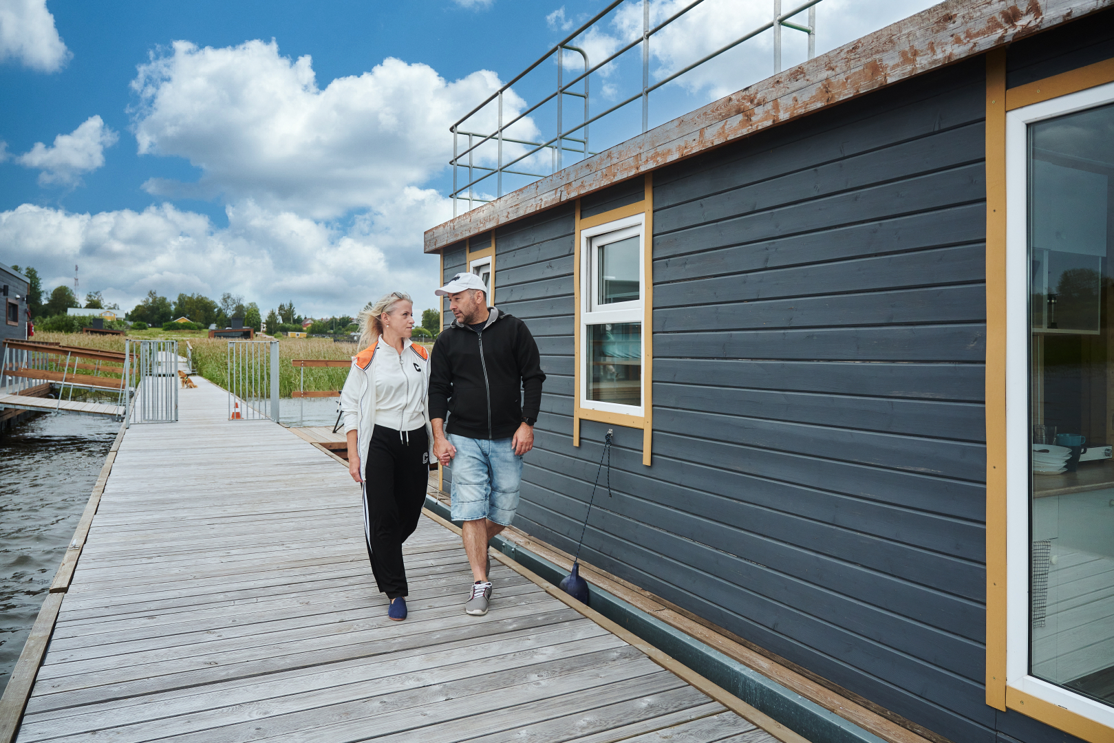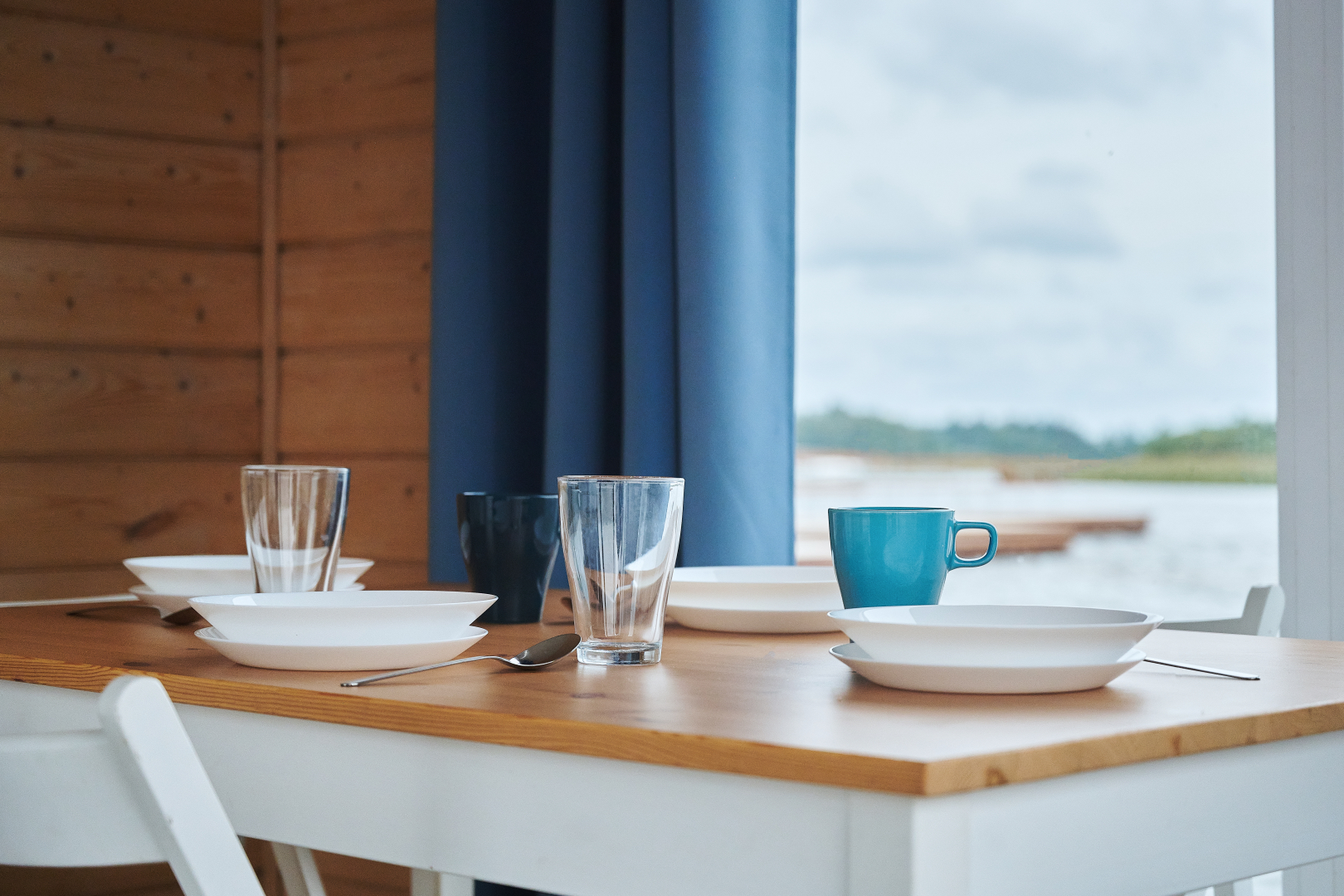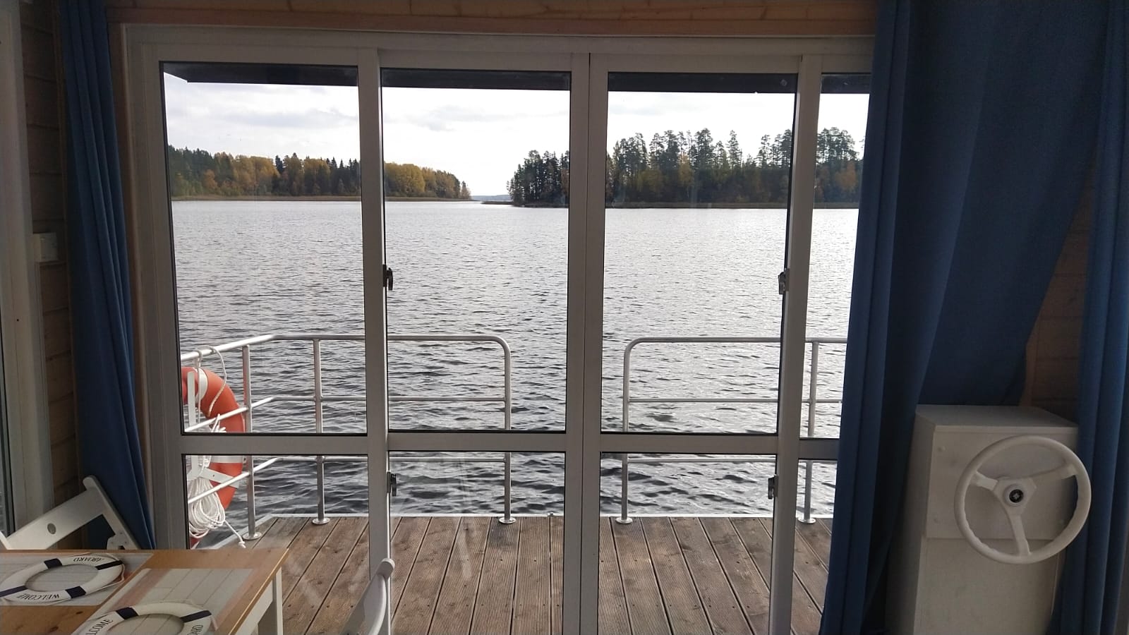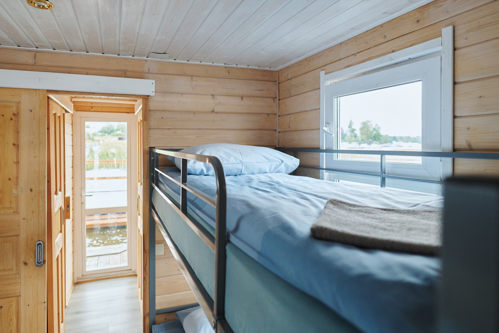 Дом на воде со всеми удобствами и отоплением – спальная зона (2 двухъярусные кровати), кухня-гостиная (стол, стулья, холодильник, плита, чайник, все кухонные принадлежности), туалет, душ, постельное белье, полотенца.