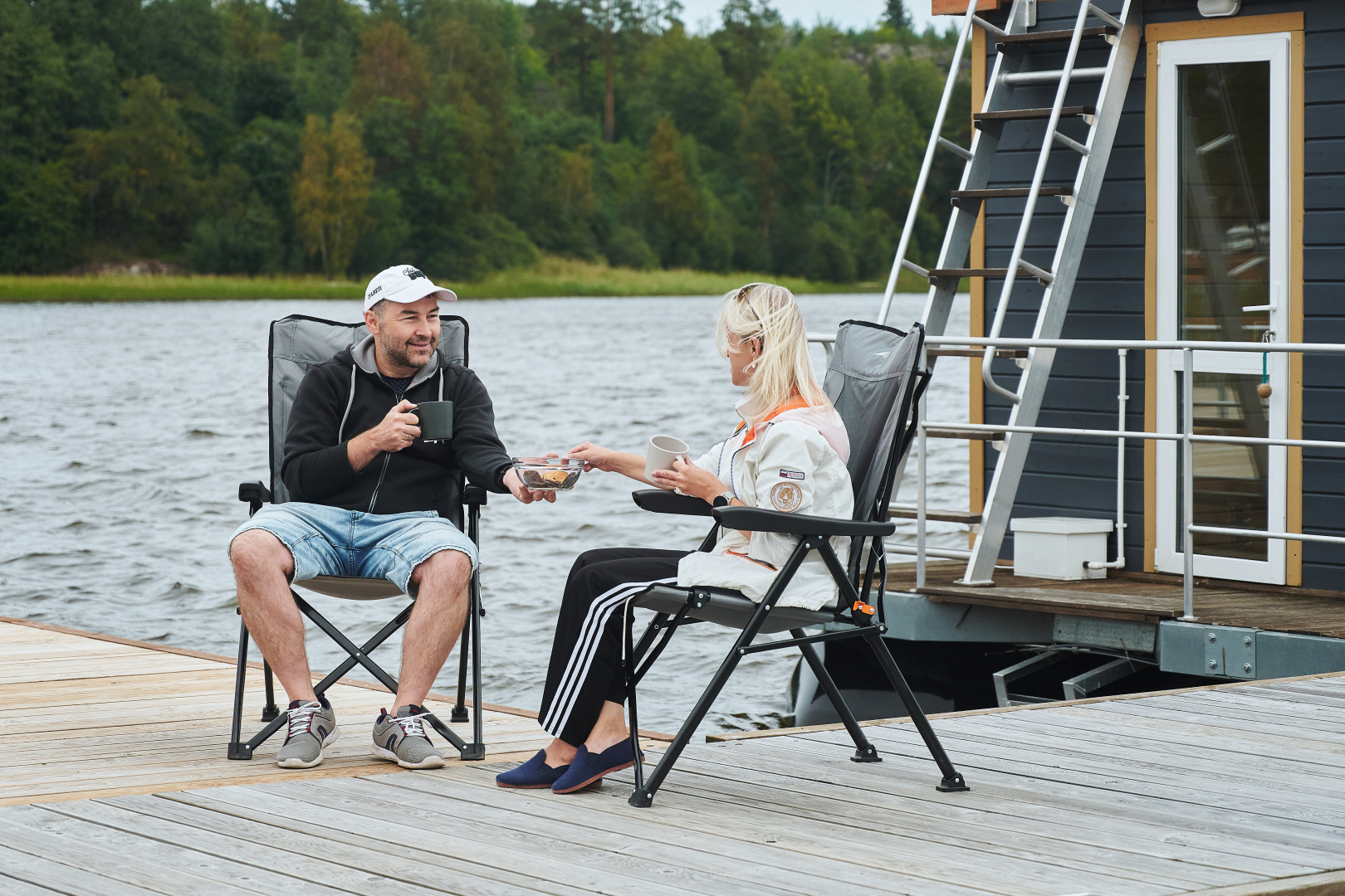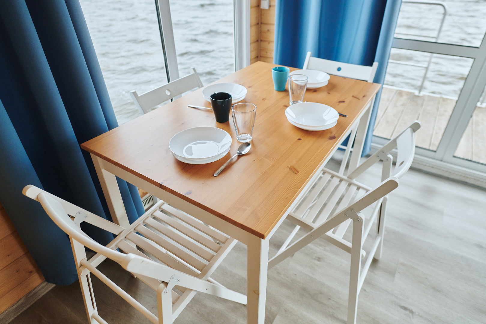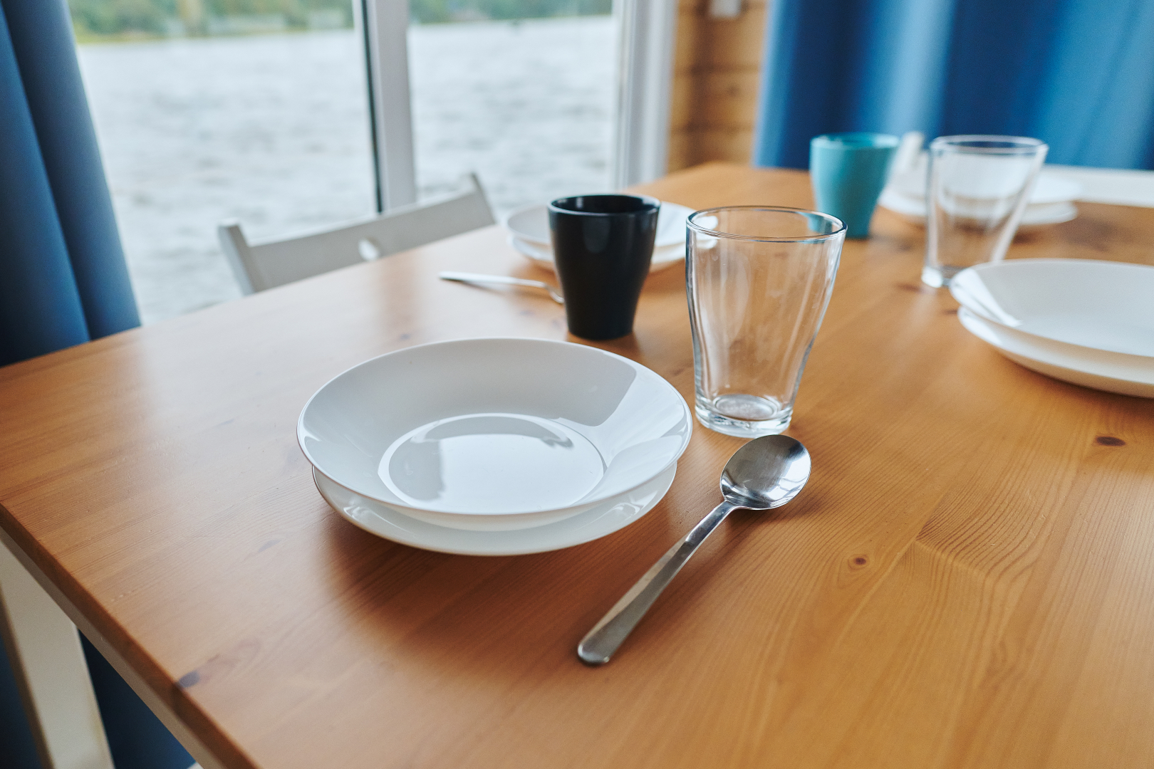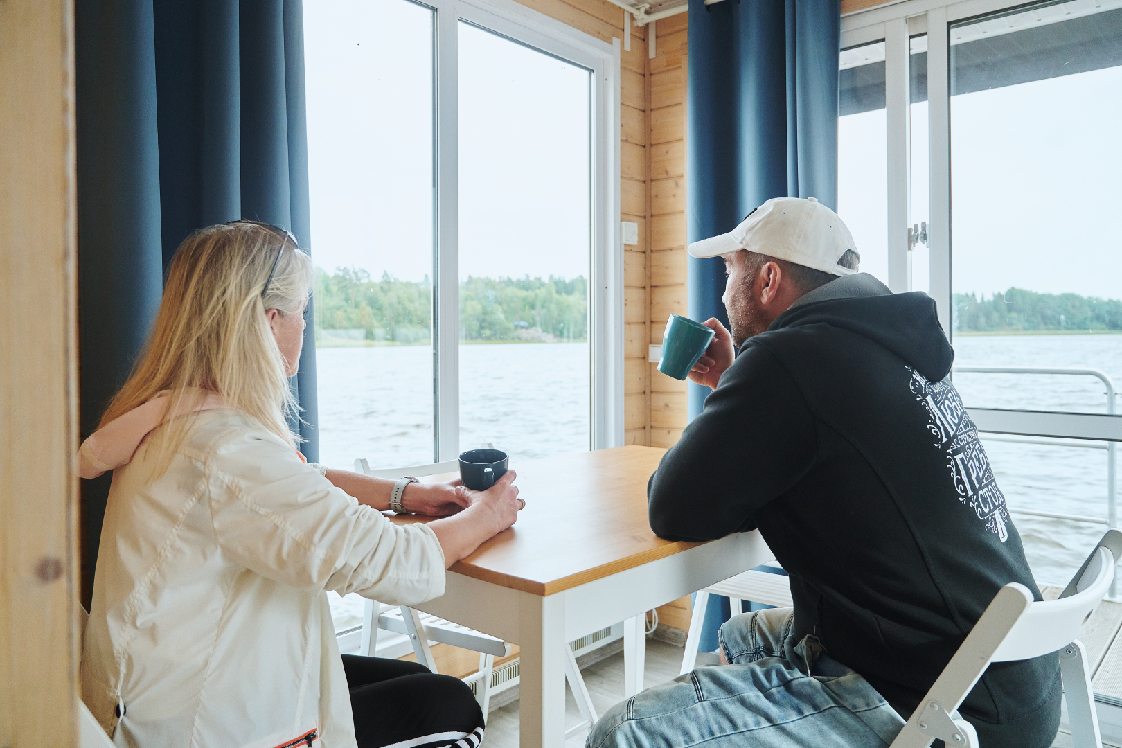 Дом на воде со всеми удобствами и отоплением – спальная зона (2 двухъярусные кровати), кухня-гостиная (стол, стулья, холодильник, плита, чайник, все кухонные принадлежности), туалет, душ, постельное белье, полотенца.